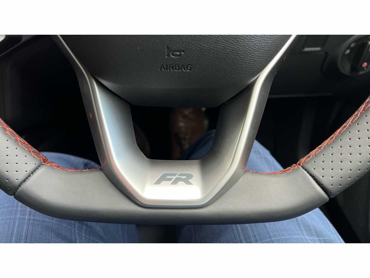 - Perforated flat bottomed leather steering wheel/gear knob/handbrake with red stitching and FR logo